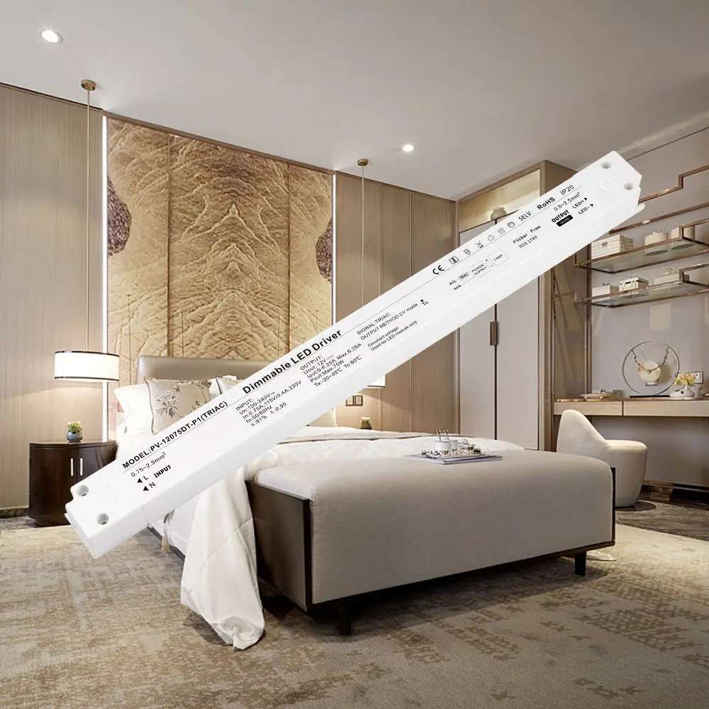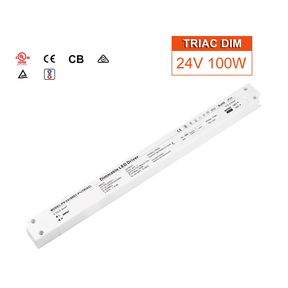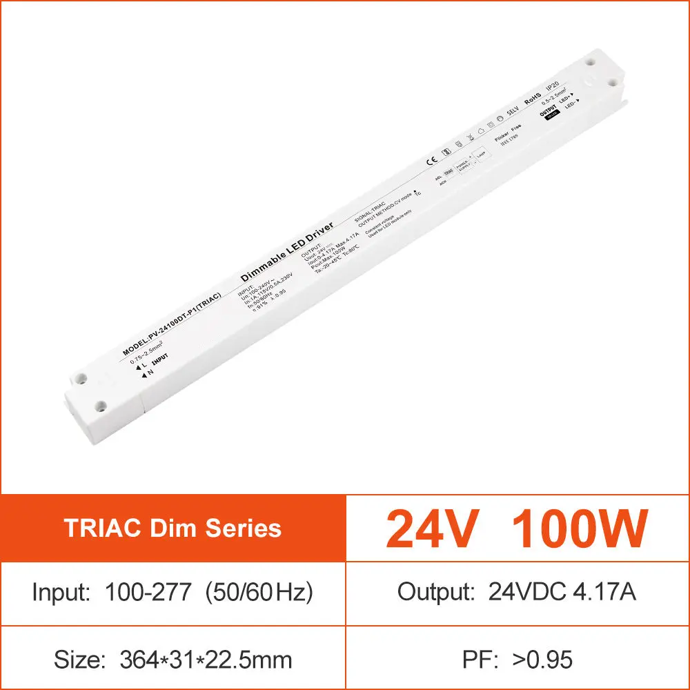 Zaawansowana wydajność dla wymagających aplikacji Ten ściemnialny sterownik LED 24 V jest zbudowany w oparciu o specyfikacje techniczne. Posiada uniwersalne wejście AC (100-250V), zapewniające kompatybilność z sieciami energetycznymi na całym świecie. Dzięki wysokiej sprawności sięgającej 90% i korekcji współczynnika mocy (PFC) często przekraczającej 0,95, minimalizuje straty energii i zmniejsza obciążenie systemu elektrycznego. Podstawą jego funkcjonalności jest zaawansowana technologia ściemniania TRIAC (z odcięciem fazy), która umożliwia płynne ściemnianie bez migotania od 0% do 100% w połączeniu ze standardowymi ściemniaczami ściennymi, umożliwiając stworzenie doskonałej atmosfery. Aby zapewnić trwałość w różnych środowiskach, jest oferowany w obudowach od standardowego IP20 po wytrzymałą aluminiową obudowę o stopniu ochrony IP67, chroniącą przed kurzem i wilgocią zarówno do użytku wewnątrz, jak i na zewnątrz.