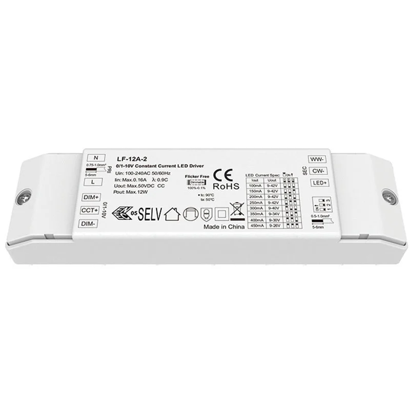 Fabryczny, klasyczny sterownik LED CCT o mocy 12 W i mocy 12 W, 0–10 V CCT, to wysokowydajne rozwiązanie oświetleniowe zaprojektowane z myślą o stabilnej i elastycznej kontroli oświetlenia. Dzięki szerokiemu zakresowi napięcia wejściowego 100–240 V AC, bezproblemowo dostosowuje się do różnorodnych systemów elektrycznych. Charakteryzujący się współczynnikiem mocy >0,96 i sprawnością do 89%, zapewnia energooszczędną pracę, dostarczając precyzyjny prąd stały z dokładnością ±5%, eliminując migotanie (współczynnik stroboskopowy <1%). Zgodny z certyfikatami CE i ROHS, idealnie nadaje się do zastosowań oświetleniowych w obiektach komercyjnych, przemysłowych i mieszkaniowych.