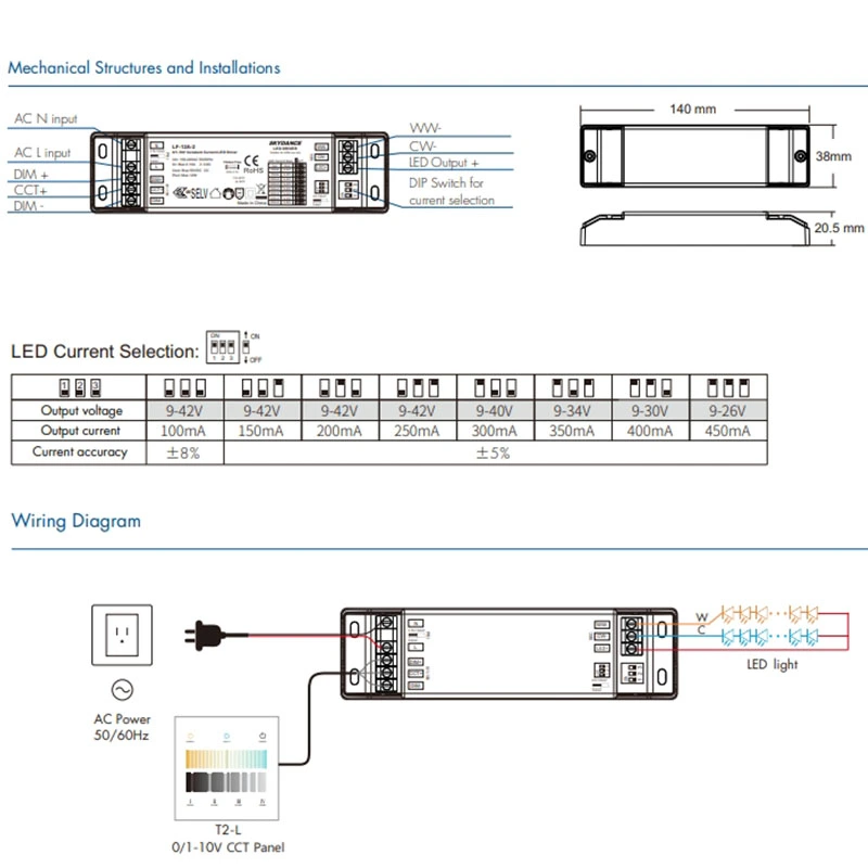 1. Precyzyjne przyciemnianie CCT 0-10 V: Sterownik LED stałoprądowy 0-10 V CCT o mocy 12 W umożliwia płynną regulację jasności i temperatury barwowej z liniową reakcją przyciemniania, kompatybilny z głównymi sterownikami 0-10 V w celu zapewnienia dostosowanej kontroli nastroju.