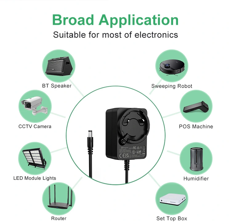 Jako profesjonalny producent, firma Starwell pragnie zapewnić Państwu wysokiej jakości zasilacz ścienny z odłączaną wtyczką o mocy 12 W, zgodny z normami bezpieczeństwa IEC 62368-1B / IEC 61558-2-16E / ETL 1310, a typ wtyczki AC obsługuje USA/UE/UK/AU lub więcej.