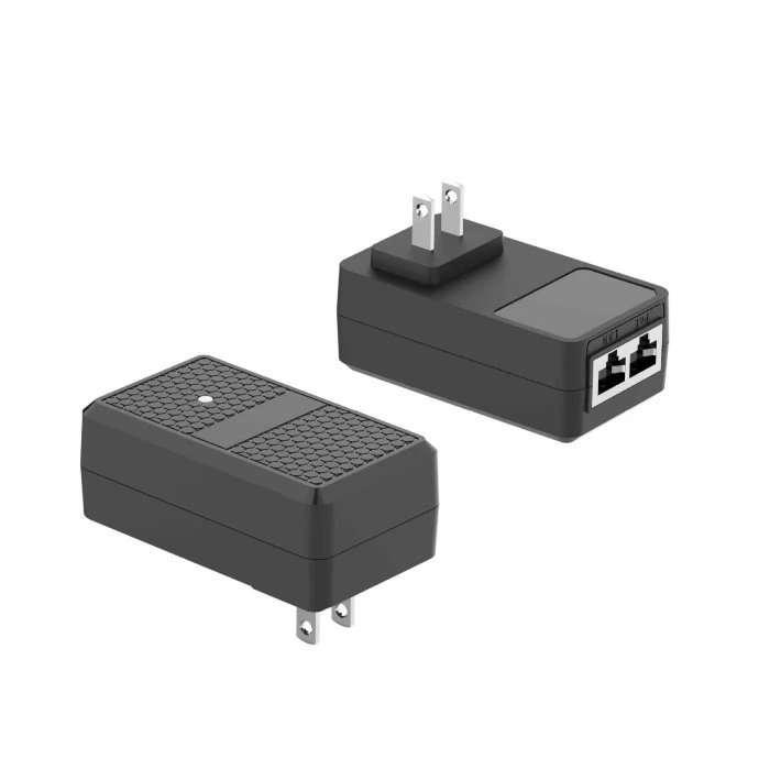 Jako profesjonalny producent zasilaczy w Chinach, Starwell Factory 12W do montażu na ścianie wymienny wstrzykiwacz PoE z wymienną wtyczką integruje zasilacz i wtryskiwacz mocy w jednym urządzeniu. Dzięki kompaktowej konstrukcji do montażu na ścianie można go podłączyć bezpośrednio do gniazdka ściennego, co skutecznie oszczędza miejsce i minimalizuje plątaninę kabli. Produkt obsługuje wiele wymiennych wtyczek (w tym typy amerykańskie, europejskie, brytyjskie i AU), aby dostosować się do standardów elektrycznych obowiązujących w różnych regionach świata. Zapewnia stabilną moc wyjściową 12 W w trybie B (4/5+, 7/8-) i jest wyposażony w port RJ45 10/100/1000 Mb/s z automatyczną negocjacją, który obsługuje transmisję Ethernet 2,5G, dzięki czemu doskonale nadaje się do urządzeń sieciowych, takich jak kamery IP i bezprzewodowe punkty dostępowe (AP).