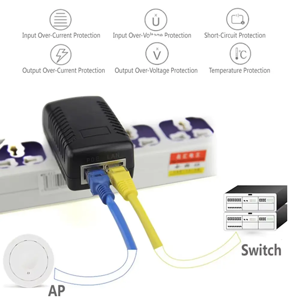 Idealny do zasilania bezprzewodowych punktów dostępowych (AP) w biurach, hotelach i domach, gdzie instalacja naścienna oszczędza miejsce.