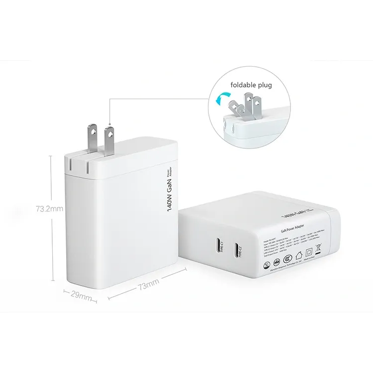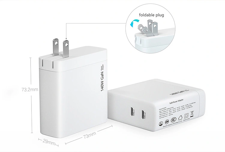 Ładowarka PD z podwójnym portem USB o mocy 140 W, składana wtyczka amerykańska