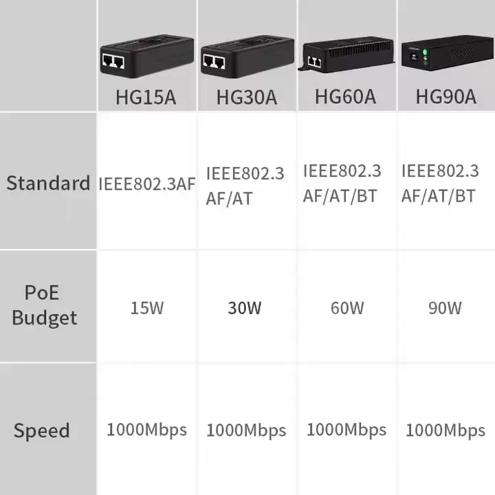 Ściśle zgodny z IEEE 802.3af, ten wtryskiwacz PoE o mocy 15 W zapewnia stabilną moc 48 V 15 W dla różnych urządzeń PoE. Standaryzowana konstrukcja zapewnia bezpieczne, niezawodne zasilanie i silną kompatybilność jako profesjonalny adapter PoE do komputerów stacjonarnych.