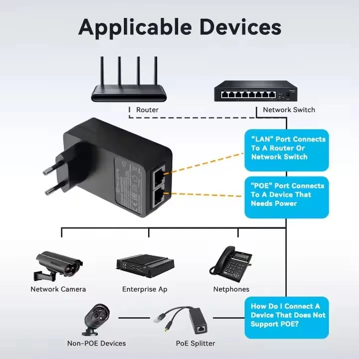 STARWELL jest znanym i profesjonalnym producentem uniwersalnych adapterów POE 12 V 24 V 48 V z siedzibą w Chinach. Zbudowaliśmy naszą reputację na wytwarzaniu wysokiej jakości produktów po rozsądnych cenach, obsługując klientów na całym świecie niezawodnymi rozwiązaniami sieciowymi, które łączą innowację z praktycznym designem. Nasze wtryskiwacze PoE zostały zaprojektowane tak, aby obsługiwały szeroki zakres szybkości transmisji, w tym 10/100/1000M, 2,5G, 5G i 10G. Ta wyjątkowa elastyczność pozwala na bezproblemową integrację z różnorodnymi urządzeniami Ethernet, od starszego sprzętu po aplikacje o dużej przepustowości, zapewniając zarówno niezawodne dostarczanie energii, jak i nieprzerwaną transmisję danych w całej infrastrukturze sieciowej. Iniektory PoE STARWELL ściśle odpowiadają standardom IEEE802.3.af/at/bt PoE++, gwarantując szeroką kompatybilność z praktycznie wszystkimi urządzeniami obsługującymi PoE dostępnymi na rynku. Zgodność ta umożliwia efektywne dostarczanie energii, jednocześnie obsługując zaawansowane funkcje, takie jak zdalne zarządzanie urządzeniami i monitorowanie zasilania w czasie rzeczywistym, zapewniając administratorom sieci większą kontrolę nad ich instalacjami.