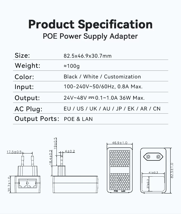 Zbudowany z najwyższej jakości komponentów zapewniających niezawodność, ten wtryskiwacz jest wyposażony w wymienne opcje wtyczek dla rynków USA/CN/UE/UK/AUS. Posiada kompleksowe globalne certyfikaty bezpieczeństwa, w tym UL, CE, FCC, TUV i UKCA. STARWELL łączy w sobie najwyższą jakość z konkurencyjną ceną, dzięki czemu ten wtryskiwacz PoE jest idealnym wyborem dla profesjonalnych instalacji sieciowych wymagających niezawodnego zasilania i szybkiej transmisji danych w kompaktowej obudowie do montażu na ścianie.