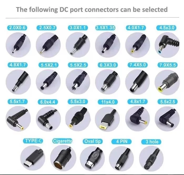 3. Zgodność złączy: Upewnij się, że wtyczka wyjściowa prądu stałego zasilacza ma odpowiednią polaryzację (często dodatnią w środku) i wymiary fizyczne (np. 5,5 mm x 2,1 mm), aby bezpiecznie pasować do gniazda zasilania urządzenia.