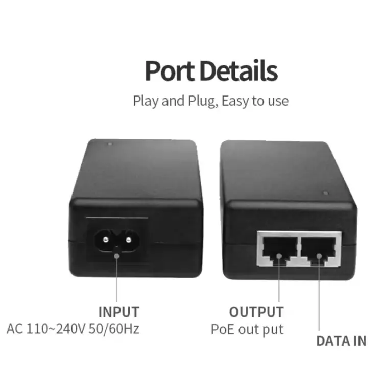 Ten pasywny wtryskiwacz PoE wykorzystuje bezpośrednią transmisję mocy bez uzgadniania protokołu, zmniejszając złożoność systemu i poprawiając kompatybilność z określonym sprzętem sieciowym.
