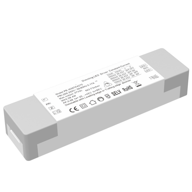 Wysokiej jakości sterownik LED z przyciemnianiem triakowym o mocy 30 W jest produkowany przez firmę Starwell, profesjonalnego producenta sterowników LED w Chinach. Nasz trwały sterownik LED to wyspecjalizowane urządzenie zasilające dostosowane do systemów oświetlenia LED, integrujące stabilną moc wyjściową prądu stałego i kompatybilność ze ściemnianiem TRIAC, aby zrównoważyć wydajność oświetlenia i efektywność energetyczną. Dzięki mocy znamionowej 30 W pasuje do opraw LED średniej mocy (takich jak oprawy typu downlight, oświetlenie panelowe i oświetlenie szynowe) i zapewnia stałe dostarczanie prądu, skutecznie zapobiegając migotaniu diod LED spowodowanemu wahaniami napięcia i wydłużając żywotność oświetlenia o 30% lub więcej w porównaniu ze sterownikami niestałymi.
