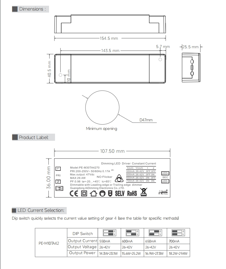 W przeciwieństwie do zwykłych sterowników, które wymagają dedykowanych systemów przyciemniania, ten produkt bezproblemowo współpracuje z istniejącymi przełącznikami przyciemniania AC TRIAC (powszechnymi w domach i przestrzeniach komercyjnych), umożliwiając płynną regulację jasności w zakresie od 10% do 100% bez zakłóceń sygnału lub przyciemniania martwych stref. Ta „przyjazna modernizacja” konstrukcja eliminuje potrzebę zmiany okablowania, znacznie zmniejszając koszty modernizacji w przypadku projektów renowacji oświetlenia.