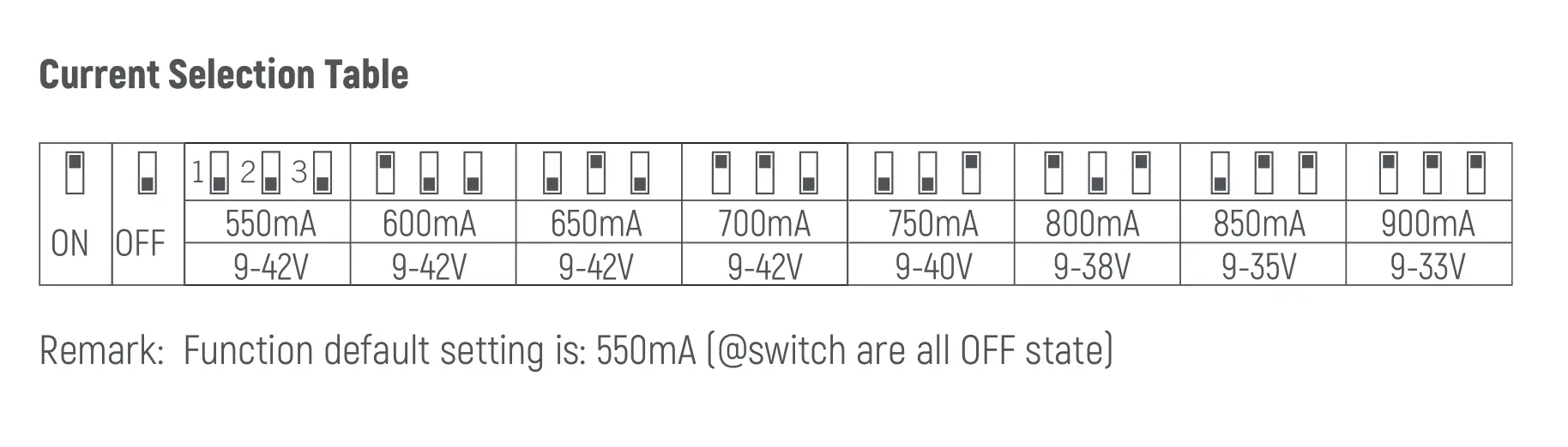 Pojedynczy kanał dla 180mA/240mA/300mA |