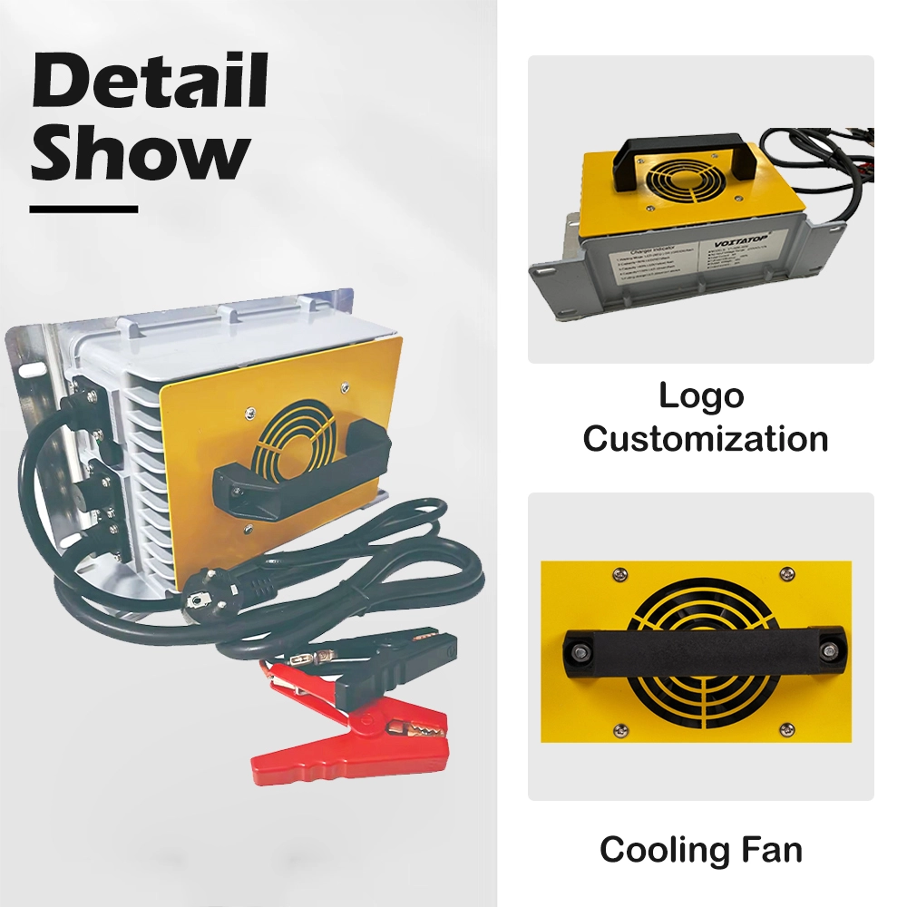 Dzięki wbudowanym zabezpieczeniom przed przepięciem, przetężeniem, zwarciem, odwrotną polaryzacją, przegrzaniem i zbyt niskim napięciem akumulatora, ładowarka zapewnia bezpieczną pracę w każdych warunkach. Uszczelniona, bezobsługowa konstrukcja skraca przestoje i obniża całkowity koszt posiadania, co czyni go niezawodnym wyborem zarówno dla operatorów flot, jak i producentów sprzętu.
