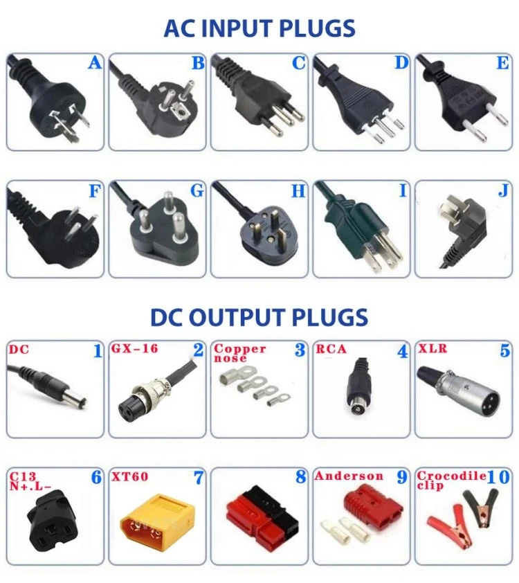 Ochrona przed przepaleniem: Temperatura ładowarki przekracza ograniczenie. Ładowanie obniży obciążenie mocy. Temperatura otoczenia przekroczy 65℃, ładowarka przestanie ładować i przejdzie w tryb czuwania do czasu, aż temperatura otoczenia spadnie. Zabezpieczenie przed odwrotnym podłączeniem akumulatorów: Obwód wewnątrz ładowarki zostanie wyłączony w przypadku akumulatorów, gdy akumulatory zostaną podłączone odwrotnie i nie spowoduje to uszkodzenia ładowarki. Ochrona bez obciążenia: Brak sygnału wyjściowego, gdy akumulatory nie są podłączone. Zabezpieczenie przed zwarciem: Obwód wewnątrz ładowarki wyłącza się wraz z akumulatorami w przypadku zwarcia na wyjściu. Ładowarka rozpocznie ładowanie dopiero po rozwiązaniu problemu i ponownym uruchomieniu ładowarki. Automatyczne wyłączanie po pełnym naładowaniu: ładowanie wyłącza się automatycznie po całkowitym naładowaniu akumulatora, zgodnie z oceną ładowarki. |