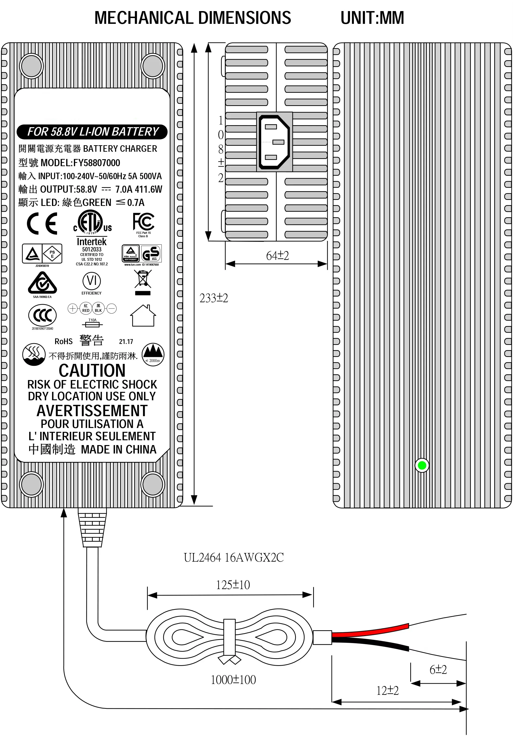 UL60950,UL1012,UL1310, IEC61347, IEC60950, IEC61558, IEC60335, EN62233, EN62493 |