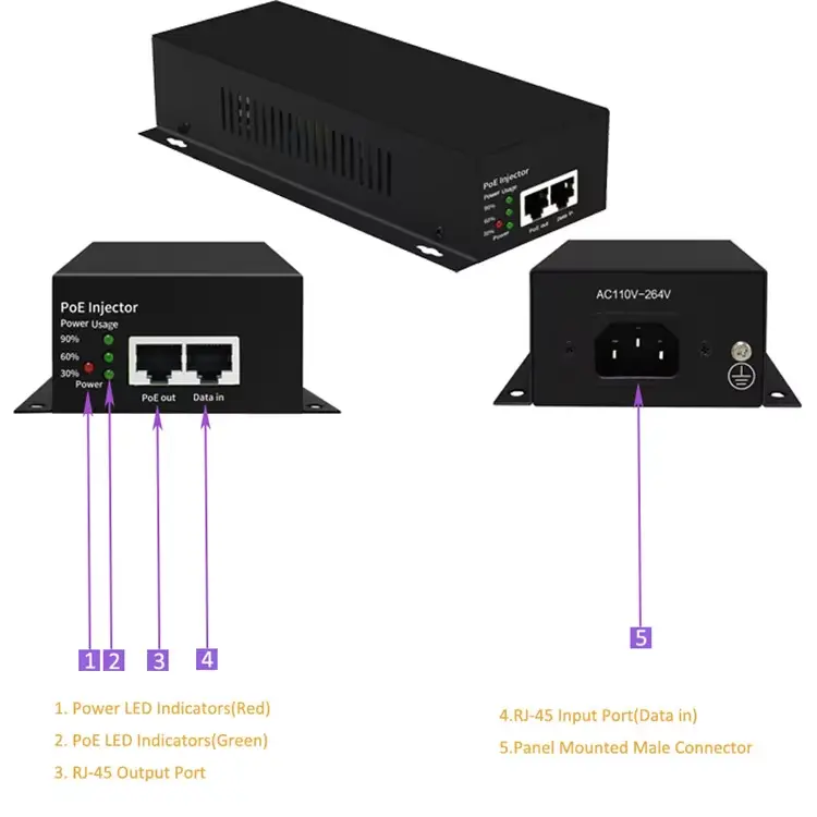 Jako profesjonalny producent zasilaczy w Chinach, firma Starwell wprowadziła na rynek gigabitowy wstrzykiwacz PoE IEEE802.3bt o mocy 90 W, który jest w pełni zgodny ze standardem IEEE 802.3bt. Obsługuje napięcie wyjściowe 52 V, zapewnia maksymalną moc 90 W na port i jest wstecznie kompatybilny ze standardami 802.3af/at.