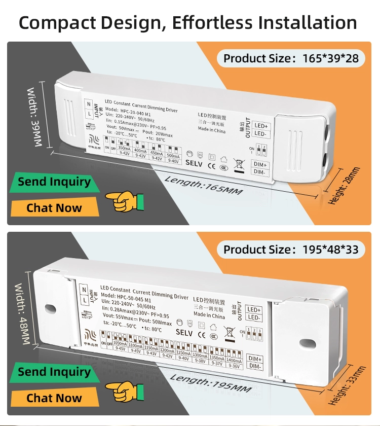 Szerokie napięcie i kompatybilność z dużą mocą dla lepszej adaptacji: Maksymalne napięcie wyjściowe sterownika LED przyciemniającego LED o stałym prądzie 0-10 V firmy Stawell wynosi 50 woltów, a maksymalna moc wyjściowa to 20 watów. Może być kompatybilny z 3 do 15 połączonymi szeregowo taśmami LED i nadaje się do różnych produktów oświetleniowych LED o mocy 20 W lub mniejszej, takich jak reflektory, oprawy typu downlight i oświetlenie panelowe itp. Nie jest wymagane żadne dodatkowe dopasowanie sterowników, co zmniejsza koszty wyboru i zastosowania.