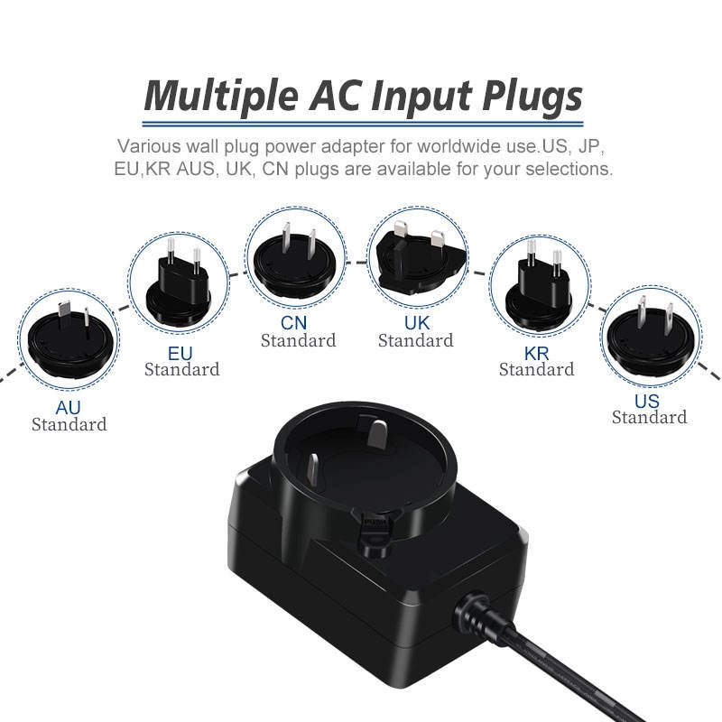 * Wiele wtyczek AC (zestaw wtyczek sprzedawany osobno) * Uniwersalne napięcie wejściowe AC * Pojedynczy kanał i zasilacz stałonapięciowy