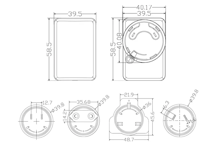 Wymienna wtyczka zasilacza 12 V 24 V Wymiary (mm):