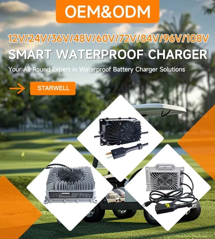 Przenośna ładowarka akumulatorów OBC 2000 W Tuv do samochodów golfowych firmy Starwell to najwyższej klasy rozwiązanie do elektrycznych samochodów golfowych, pojazdów użytkowych i podobnych pojazdów zasilanych akumulatorowo. Jako zaufany producent i fabryka z siedzibą w Chinach, Starwell gwarantuje, że każda ładowarka jest wykonana z precyzją, trwałością i wysoką wydajnością. Niezależnie od tego, czy zarządzasz flotą, czy pojedynczym pojazdem, ta ładowarka gwarantuje stałą wydajność i bezpieczeństwo.