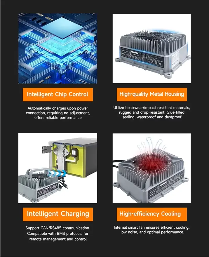 · Zintegrowany protokół komunikacyjny OBC umożliwia inteligentne zarządzanie ładowaniem, chroniąc akumulatory przed przeładowaniem, przegrzaniem i zwarciami.