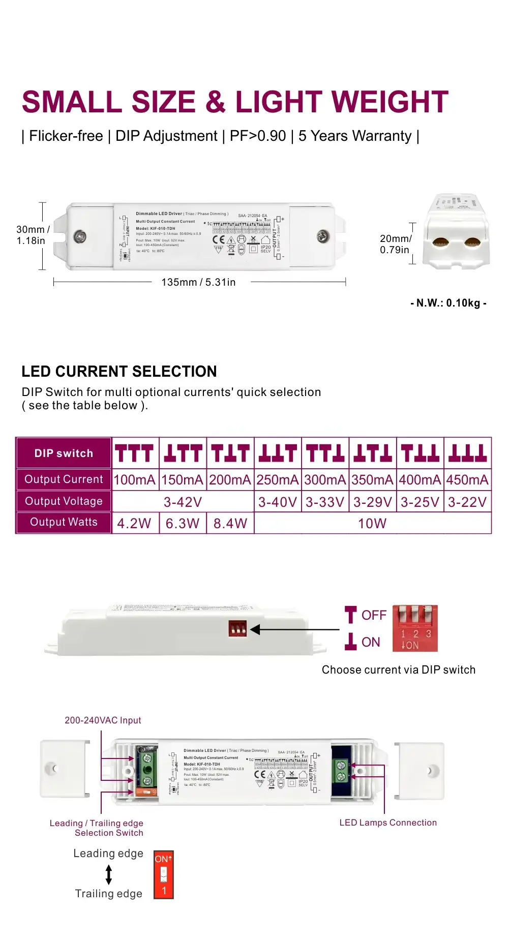 Sterownik LED o mocy 10 W, ze stałym prądem i triakiem, z możliwością ściemniania