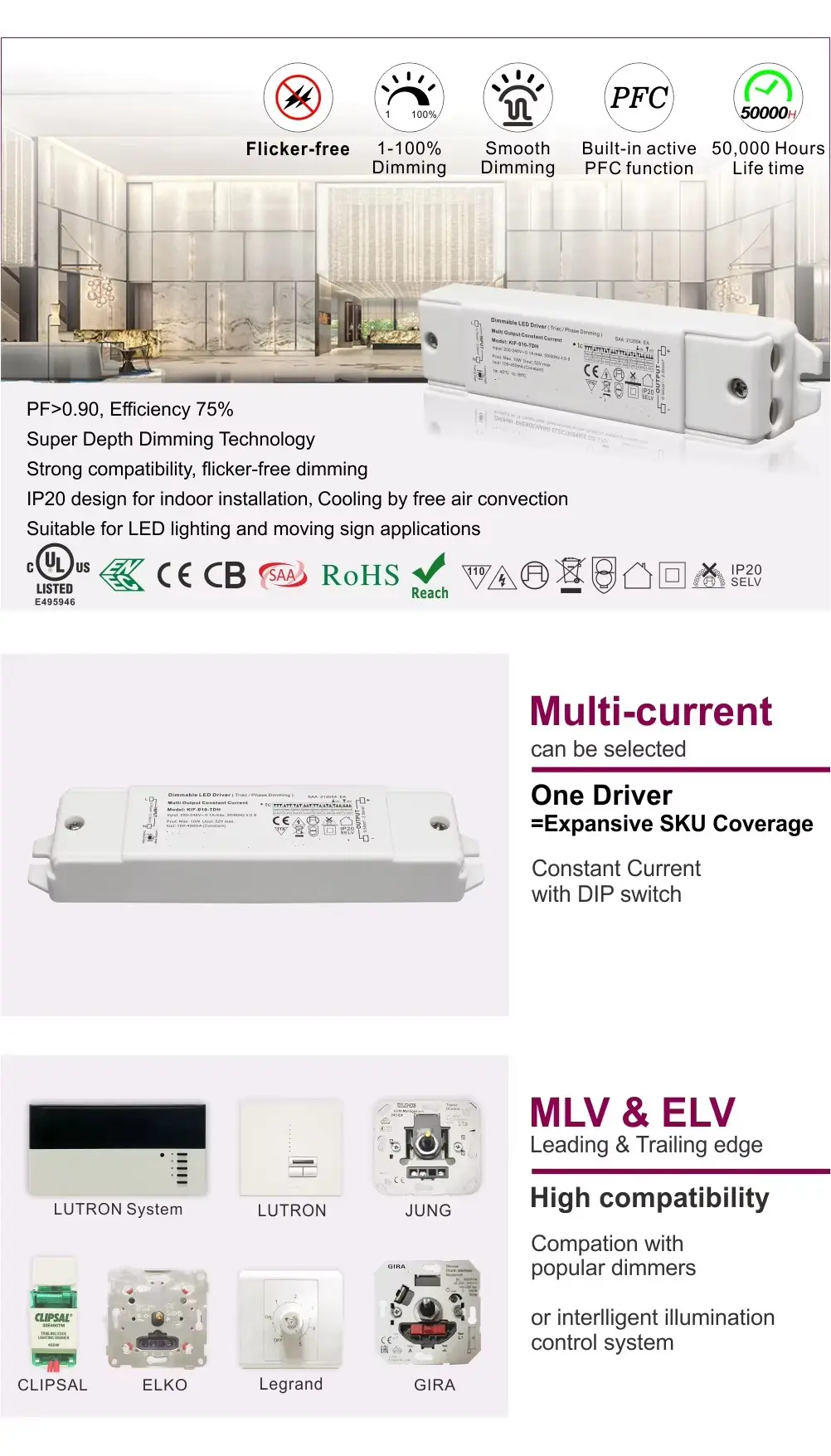 Łatwe i płynne przyciemnianie: Specjalnie zaprojektowane pod kątem kompatybilności ze standardowymi, wiodącymi ściemniaczami ściennymi TRIAC. Uzyskaj szeroki, płynny zakres ściemniania aż do niskiego poziomu bez migotania, efektu pop-on lub niestabilnego odcięcia, zapewniając dobre wrażenia użytkownika.
