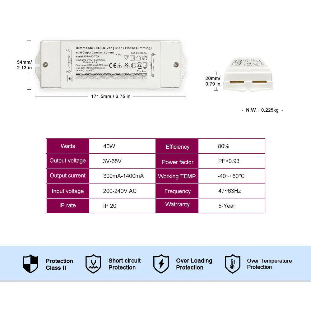 Sterownik LED o mocy 40 W, z możliwością ściemniania przy użyciu triaka, o mocy stałego prądu