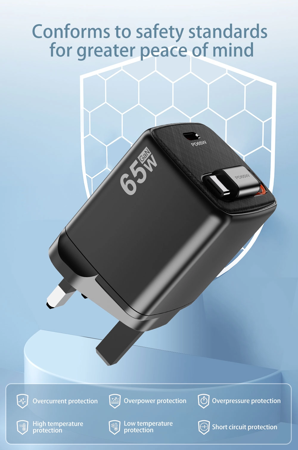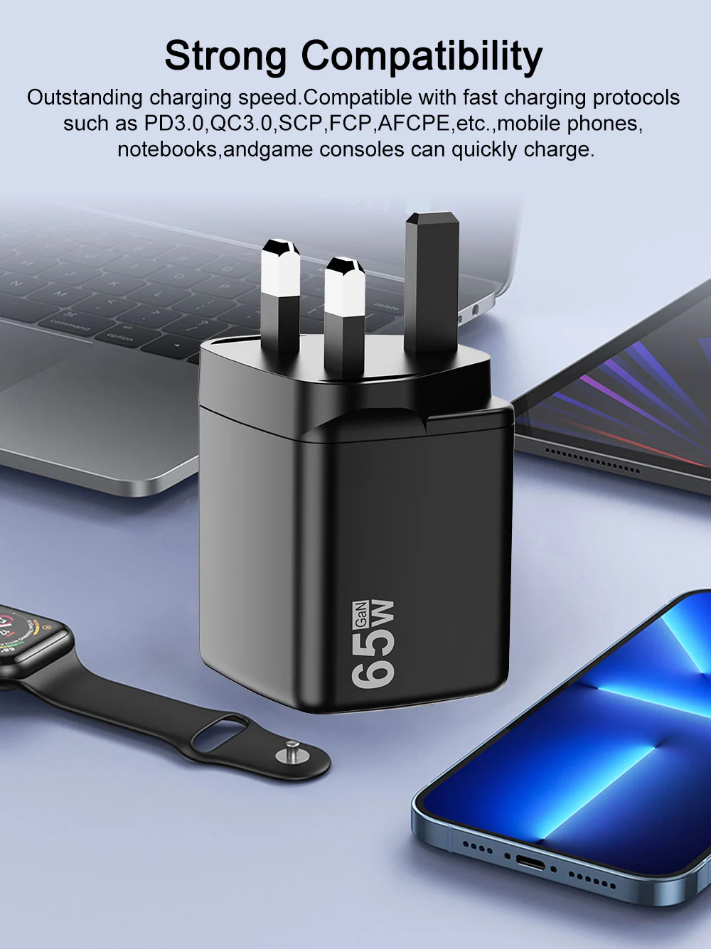 Szybka ładowarka z wtyczką brytyjską o mocy 65 W |