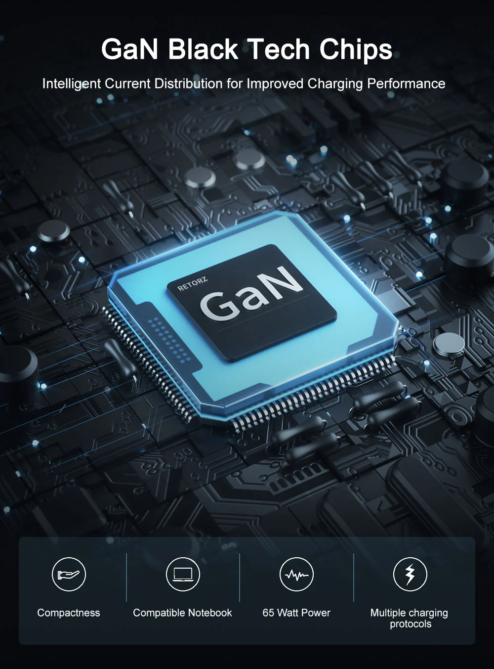 - Szybkie ładowanie: moc wyjściowa 65 W skraca czas ładowania, zapewniając szybkie ładowanie urządzeń.